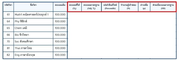 สำหรับ "หนังสือรับรองผลการสอบแยกรายวิชา" จะมีระบุข้อมูลตั้งแต่คะแนนที่สอบได้ในแต่ละรายวิชา, คะแนนมาตรฐาน หรือ T-score, เปอร์เซ็นต์ไทล์, จำนวนผู้เข้าสอบ, ค่าเฉลี่ย และส่วนเบี่ยงเบนมาตรฐาน ให้ได้ตรวจสอบกัน