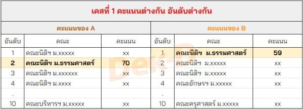 กรณีที่ 1 คะแนนต่างกัน อันดับต่างกัน