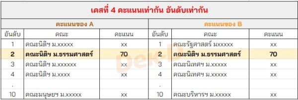 กรณีที่ 4 คะแนนเท่ากัน ลำดับเท่ากัน