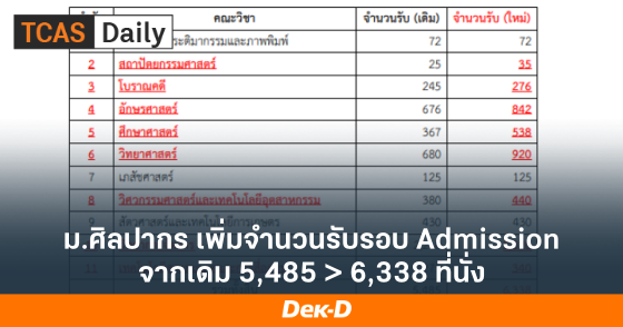 ม.ศิลปากร ปรับที่นั่งรอบ Admission เพิ่มอีก 853 ที่นั่ง