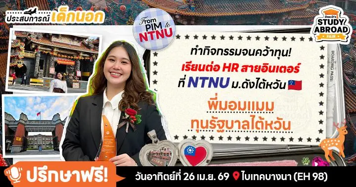 Note: เตรียมพบ "พี่มอมแมม" และอีก 20+ รุ่นพี่นักเรียนทุนดีกรี Top U ทั่วโลก ที่ให้เกียรติมาประจำบูทใหญ่ในงาน Dek-D’s Study Abroad Fair เพื่อแชร์อินไซต์และให้คำปรึกษาแบบ 1:1 โดยไม่มีค่าใช้จ่าย ในวันเสาร์ที่ 25 และอาทิตย์ที่ 26 เมษายน 2026 ที่ BITEC Bangna (EH98) จัดร่วมกับงาน Dek-D’s TCAS Fair // ไม่ต้องลงทะเบียนล่วงหน้านะคะ เล็งคิวรุ่นพี่ให้ถูกวันแล้ว Walk-in ได้เลย (พี่ๆ ใจดีมากกก)