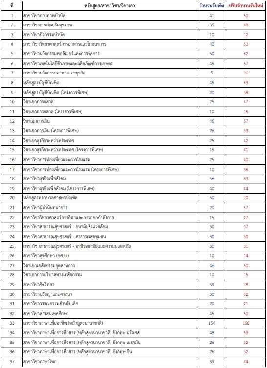 - สาขาวิชาการท่องเที่ยวและการโรงแรม จาก 25 เป็น 40 ที่นั่ง