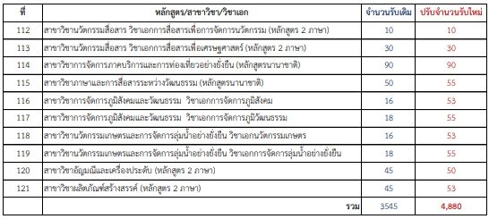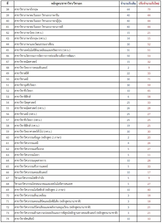 - สาขาวิชาภูมิศาสตร์และภูมิสารสนเทศ จาก 40 เป็น 78 ที่นั่ง