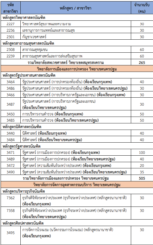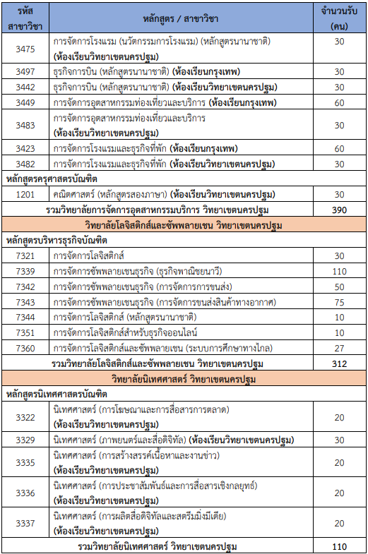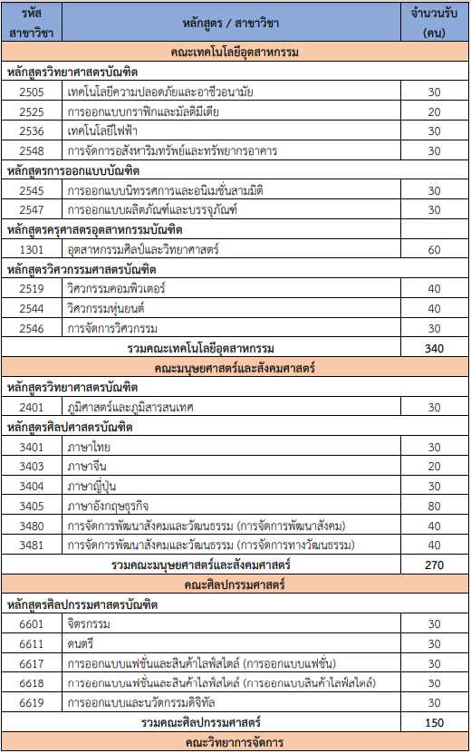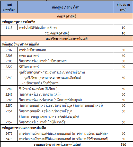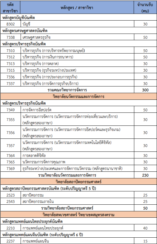 จำนวนรับแต่ละสาขาวิชา