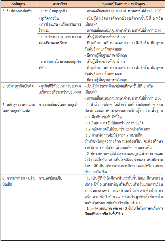 คุณสมบัติเฉพาะหลักสูตร