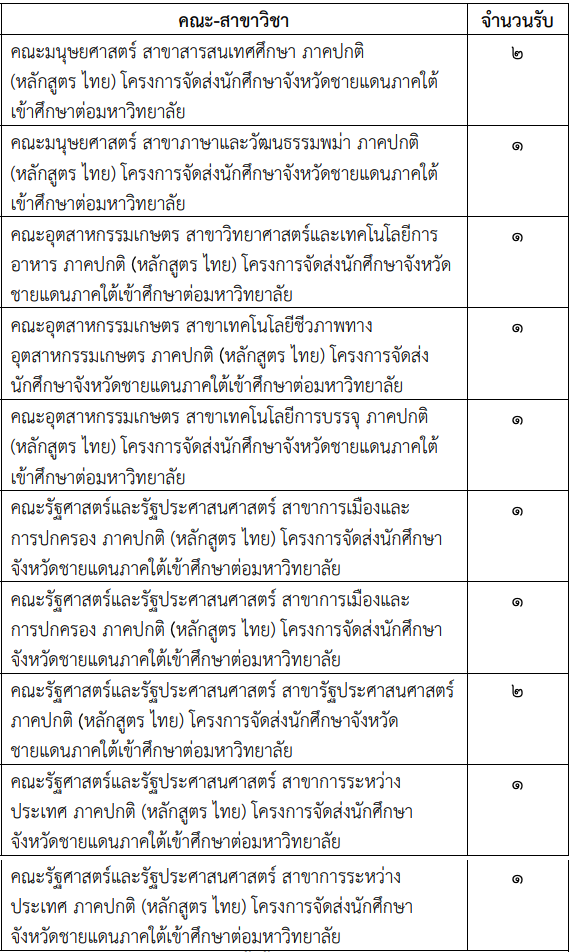 สาขาวิชาที่เปิดรับ
