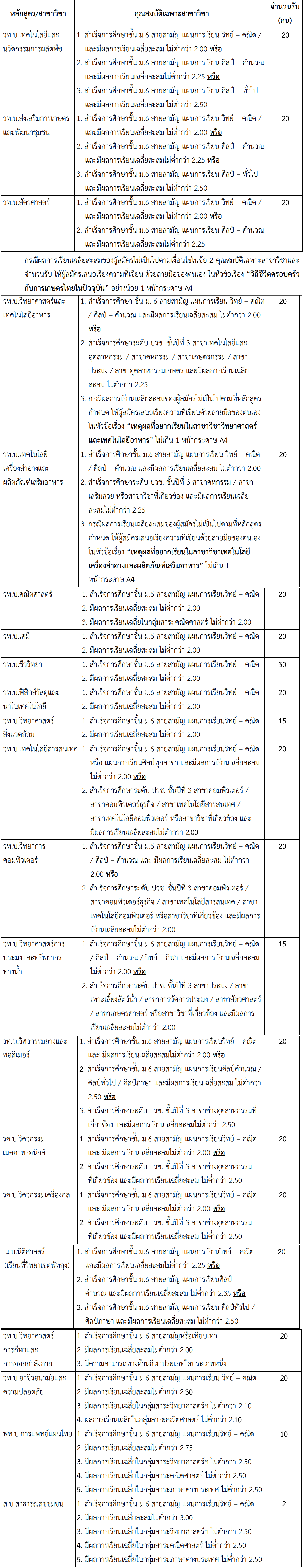 - คุณสมบัติตามที่แต่ละสาขาวิชากำหนด