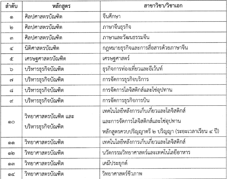 - จำนวนสาขาทีเปิดรับสมัคร : 24 สาขาวิชา