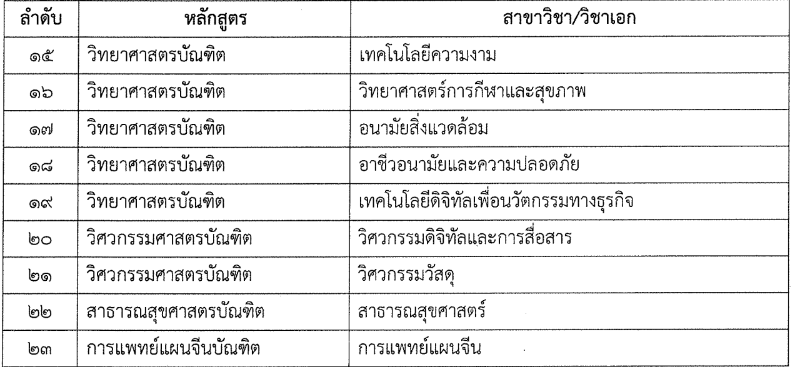 - จำนวนสาขาทีเปิดรับสมัคร : 23 สาขาวิชา