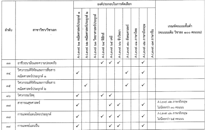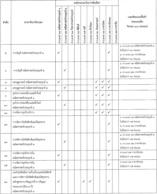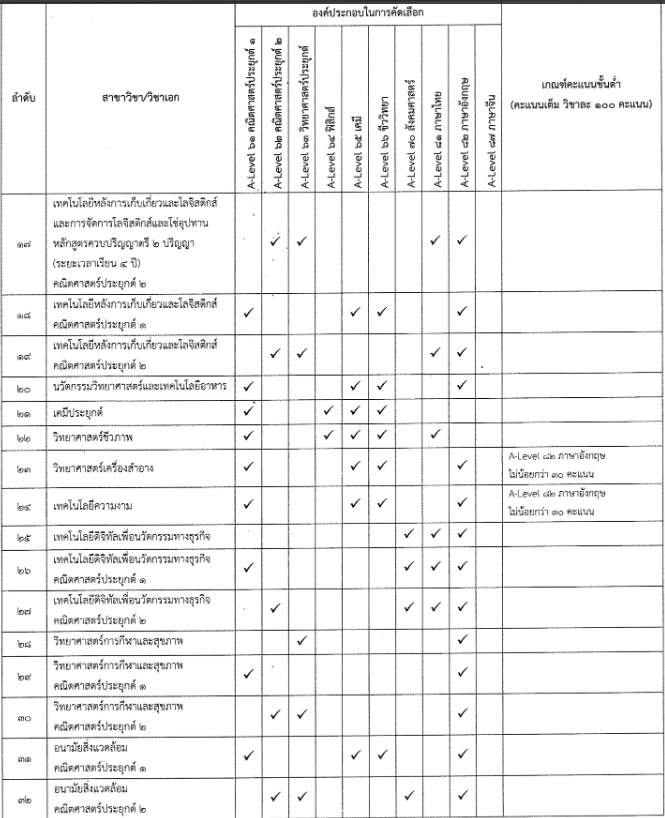 - เกณฑ์คัดเลือก : ใช้ A-Level บางสาขามีให้เลือกมากกว่า 1 รูปแบบ