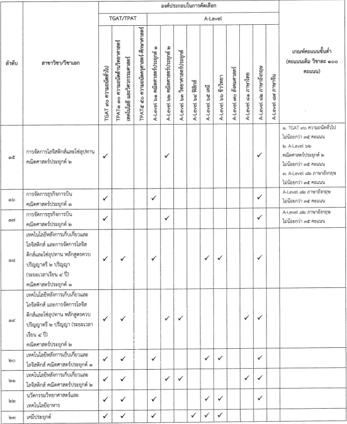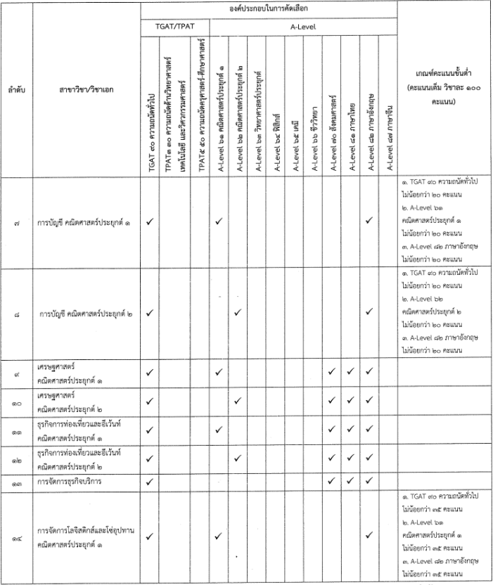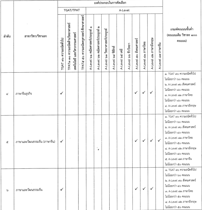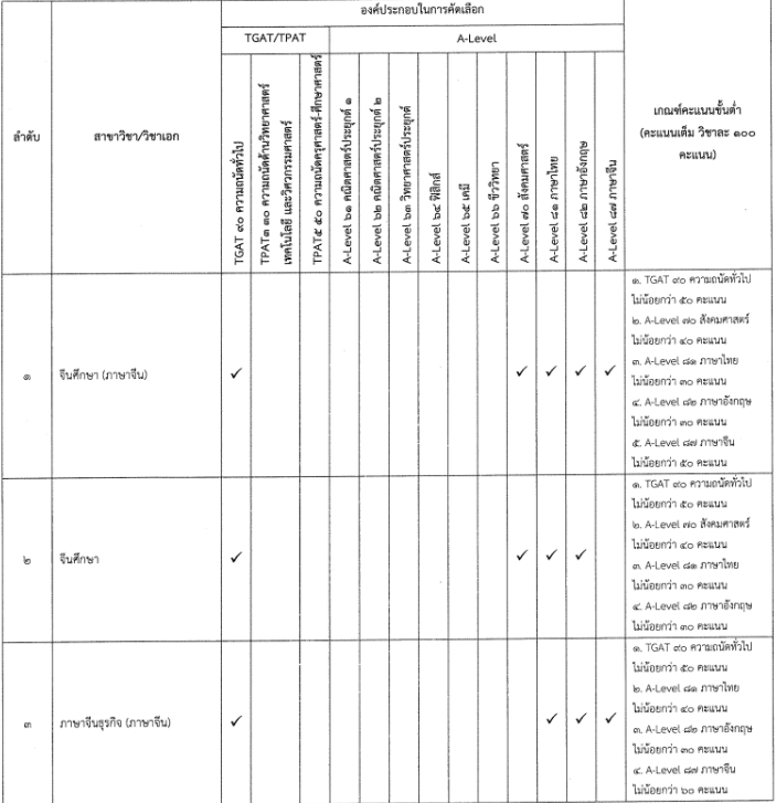 - เกณฑ์คัดเลือก : ใช้ GPAX, TGAT/TPAT และ A-Level