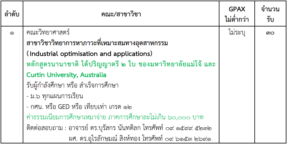 TCAS66 รอบ 4 : มหาวิทยาลัยแม่โจ้