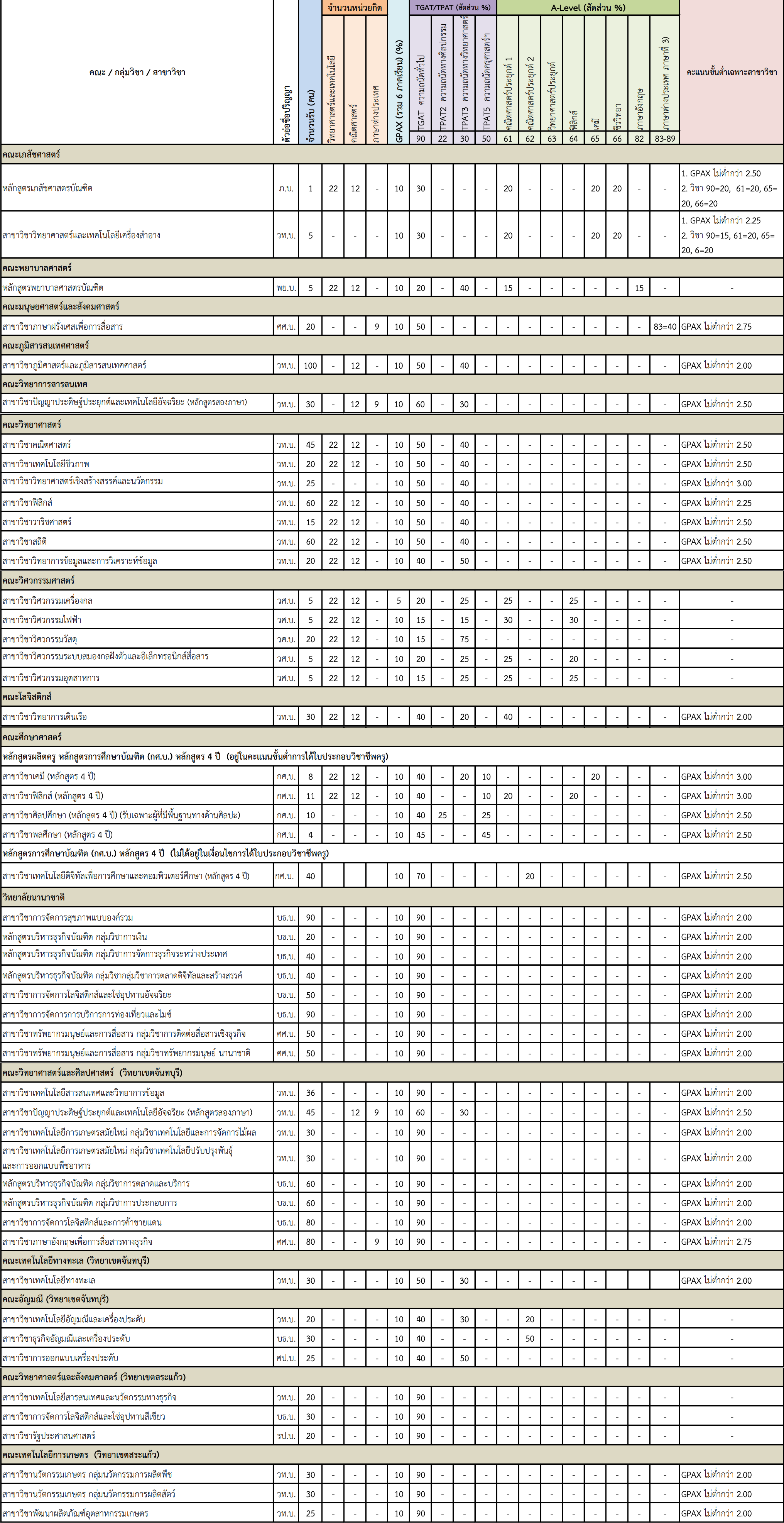 สาขาวิชาที่เปิดรับ และเกณฑ์การคัดเลือก