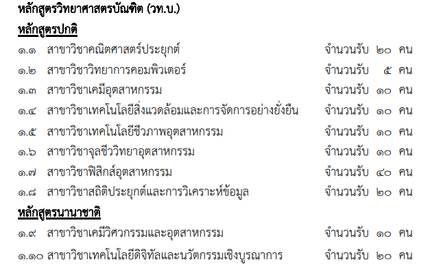 สาขาที่เปิดรับสมัคร (สมัครได้ 1 สาขาเท่านั้น)