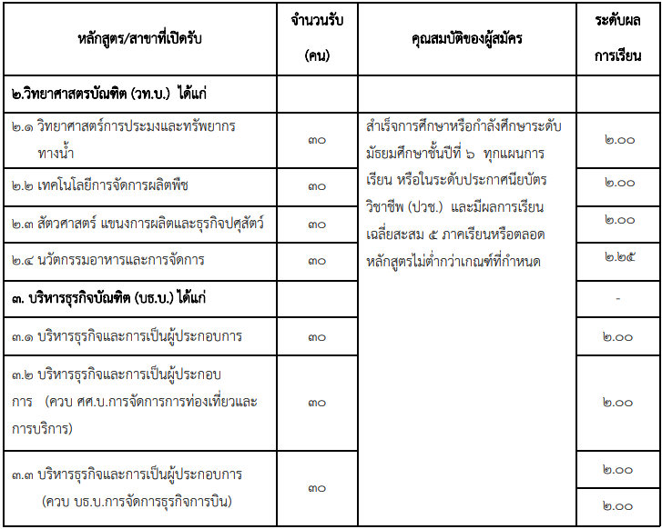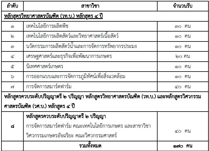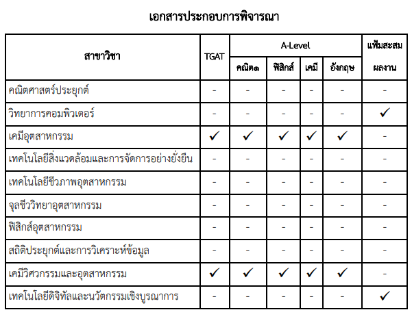 - Portfolio ไม่จำกัดจำนวนหน้า (นำมาวันสอบสัมภาษณ์) เฉพาะสาขาวิชาครุศาสตร์วิศวกรรม และสาขาวิชาครุศาสตร์เกษตร