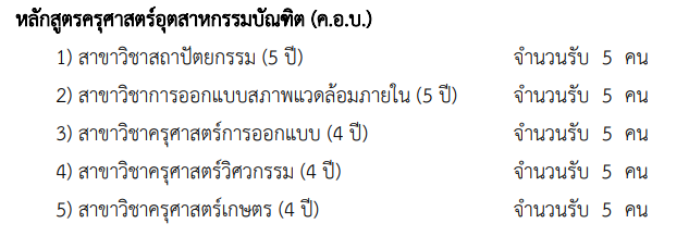 - ผลงานด้านศิลปะ (นำมาวันสอบสัมภาษณ์) เฉพาะสาขาวิชาสถาปัตยกรรม สาขาวิชาการออกแบบสภาพแวดล้อมภายและ และสาขาวิชาครุศาสตร์การออกแบบ