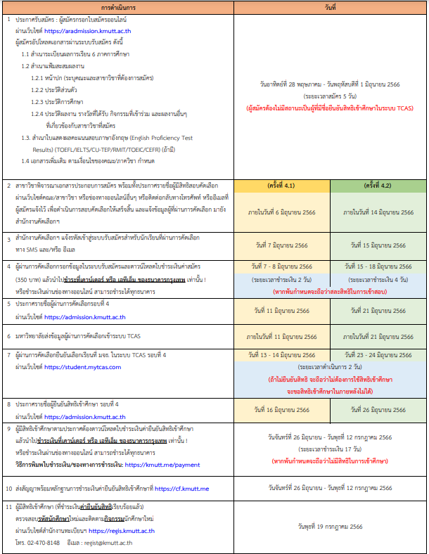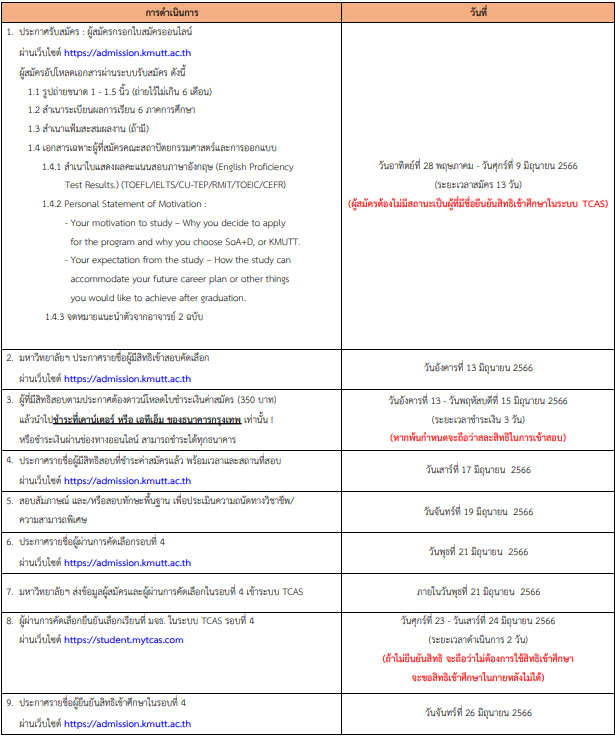 2. โครงการ KMUTT International Admission (โดยใช้คะแนน TGAT/TPAT)