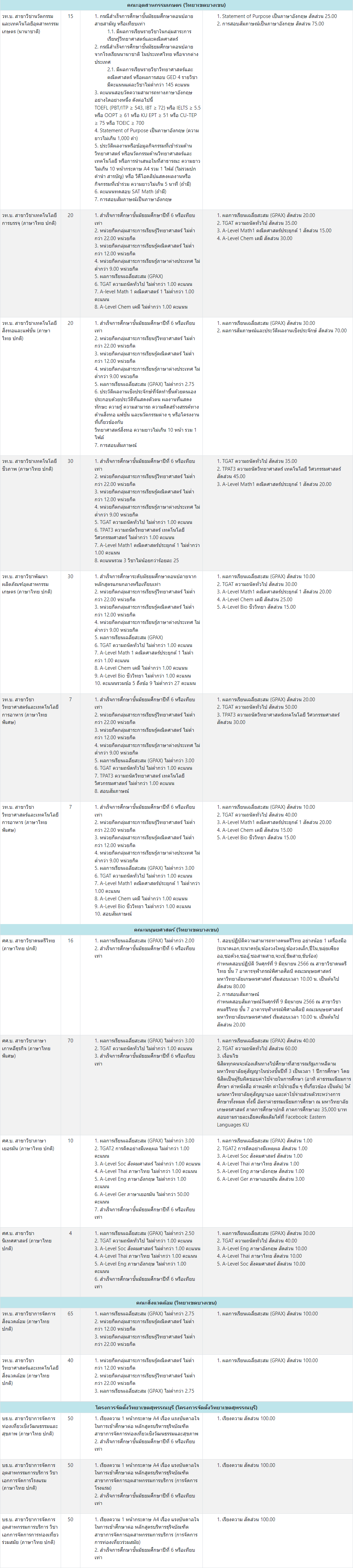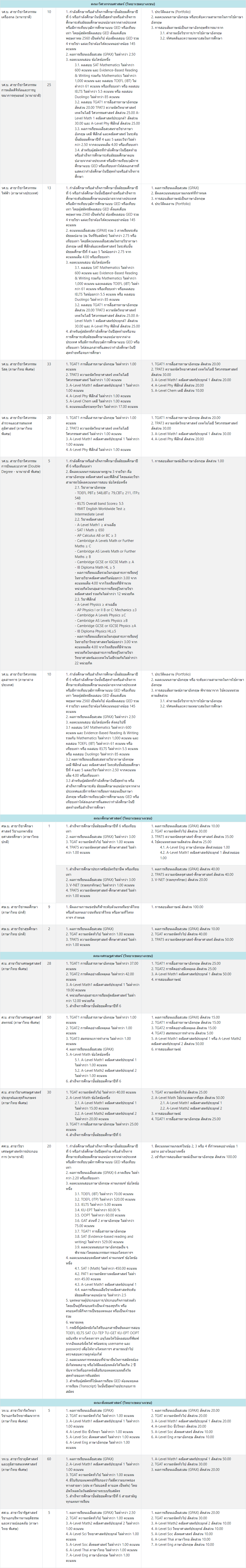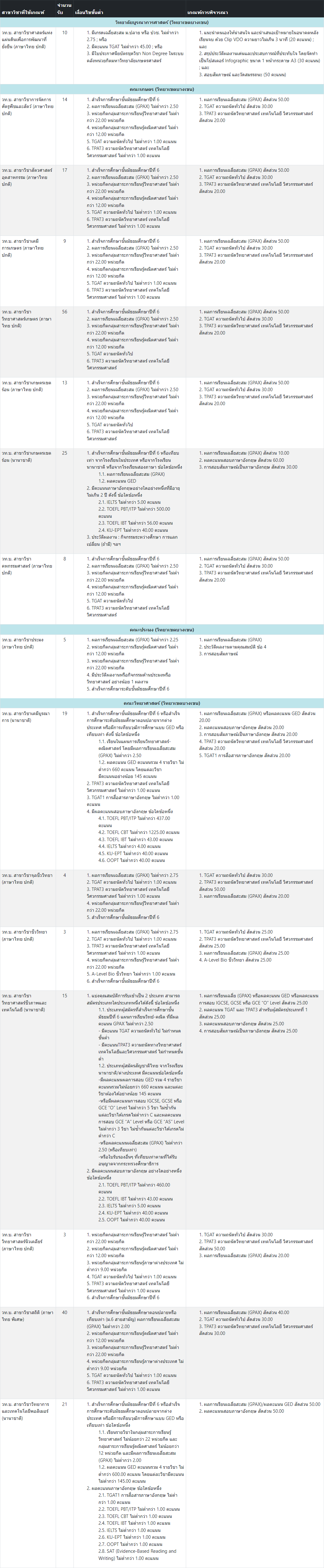 สาขาวิชาที่เปิดรับ และเกณฑ์การคัดเลือก