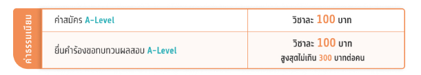 - และต้องสอบ A-Level 7 วิชา (วิชาละ 100 บาท) รวม 700 บาท