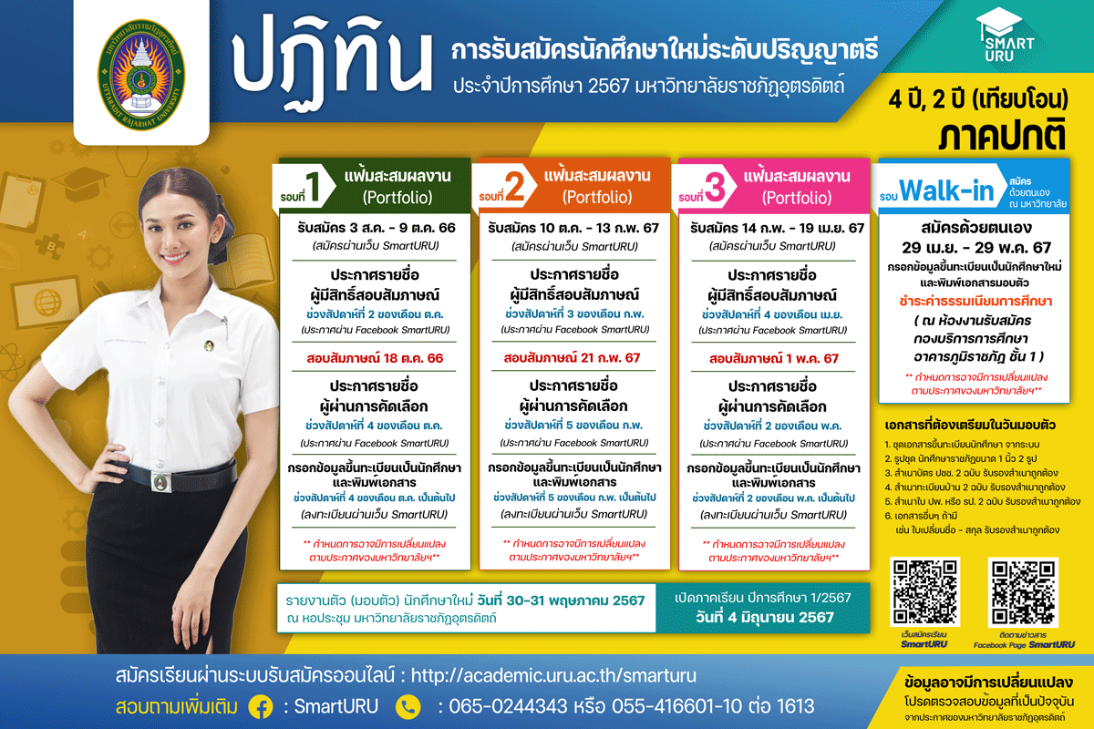 รับตรง 67 รอบที่ 1 : ม.ราชภัฏอุตรดิตถ์ เปิดรับ 7 คณะ