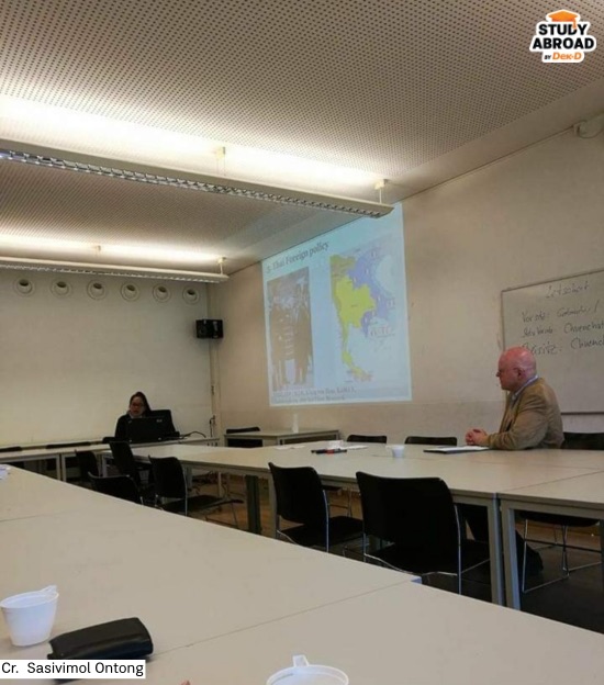“ปกติพี่จะเตรียมตัวอ่านล่วงหน้าก่อนถึงคลาสนั้นๆ ประมาณ 2-3 สัปดาห์ เขาจะมีเปิด Office Hour ให้เราถามได้ (ควรเข้าไปถาม) และห้องสมุดจะเกือบเต็มตลอด เวลาอยู่ในคลาสเพื่อนยกมือตอบกันแบบเดือดปุดๆ โดยเฉพาะคนเยอรมัน ถ้าคลาสไหนเรียนภาษาเยอรมันเรายิ่งต้องเตรียมตัวหนักเป็นพิเศษ รวมถึงเวลาทำเปเปอร์แบบ German Style เราอาจต้องปรับตัว เช่น