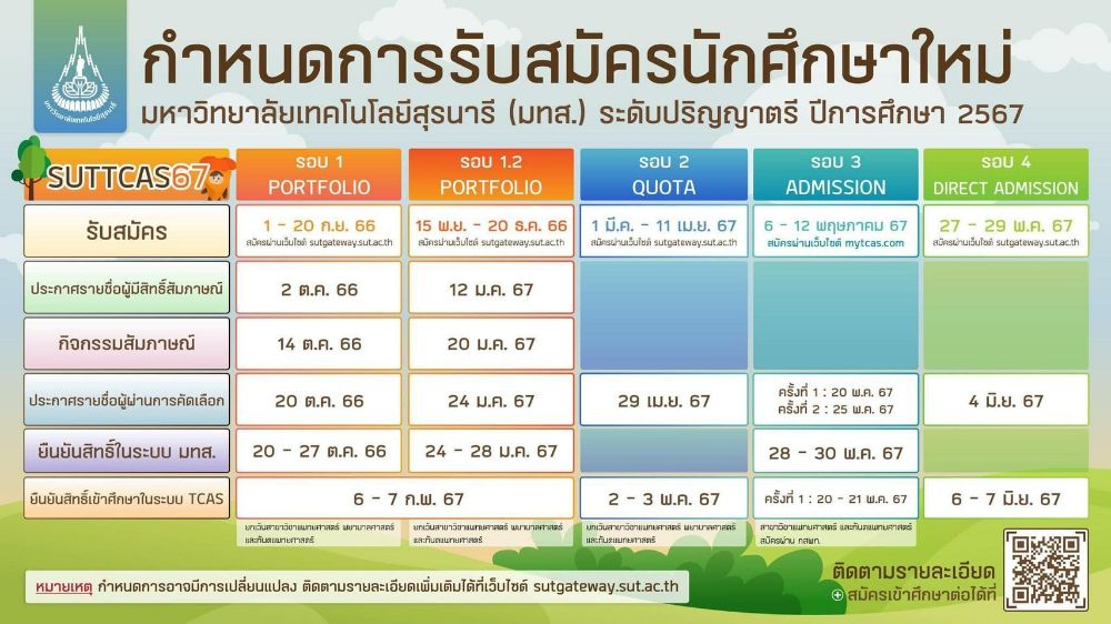 มาแล้ว! ปฏิทิน TCAS67 มหาวิทยาลัยเทคโนโลยีสุรนารี เริ่ม 1 ก.ย. 66 นี้