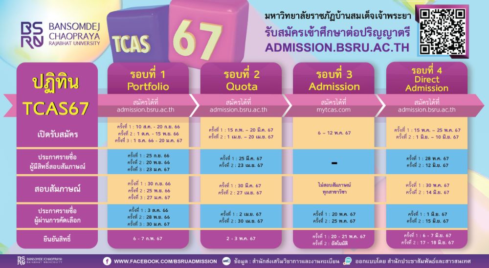 กำหนดการ TCAS67 มรภ.บ้านสมเด็จเจ้าพระยา มาแล้ว! เริ่มรับรอบแรก ถึง 20 ก.ย. 66