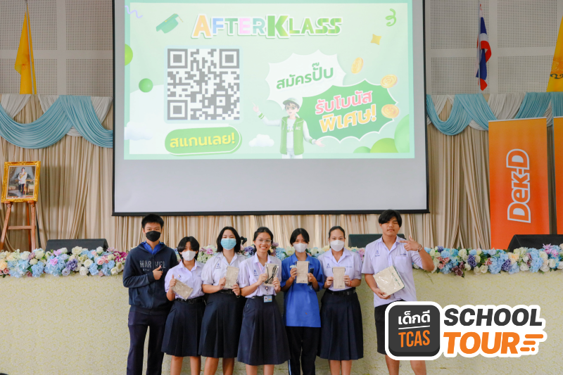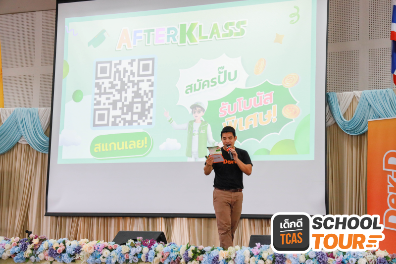 และสำหรับโครงการ "เด็กดี TCAS School Tour" นอกจากพี่ๆ เว็บ Dek-D จะแนะแนวแบบเต็มอิ่มแล้ว พี่ๆ ทาง AFTERKLASS ก็ขนของรางวัลและกิจกรรมสนุกๆ มาแจกน้องๆ กันเยอะมาก ภาพบรรยายกาศจะเป็นอย่างไร ไปติดตามกันเลย