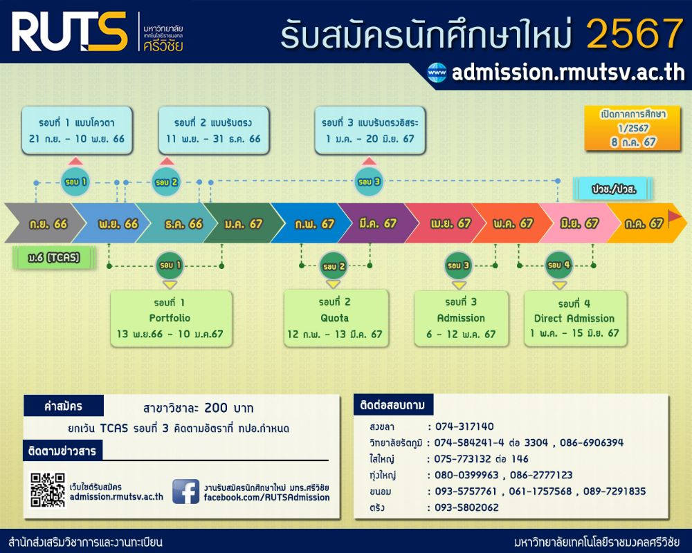 เช็กเลย! ปฏิทิน TCAS67 มหาวิทยาลัยเทคโนโลยีราชมงคลศรีวิชัย
