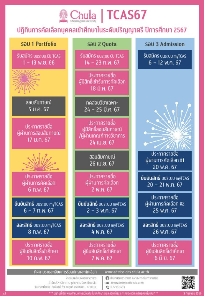 ข่าวดี! จุฬาฯ ประกาศ "ปฏิทินรับสมัคร TCAS67" แล้ว เริ่มพฤศจิกายน 66 นี้