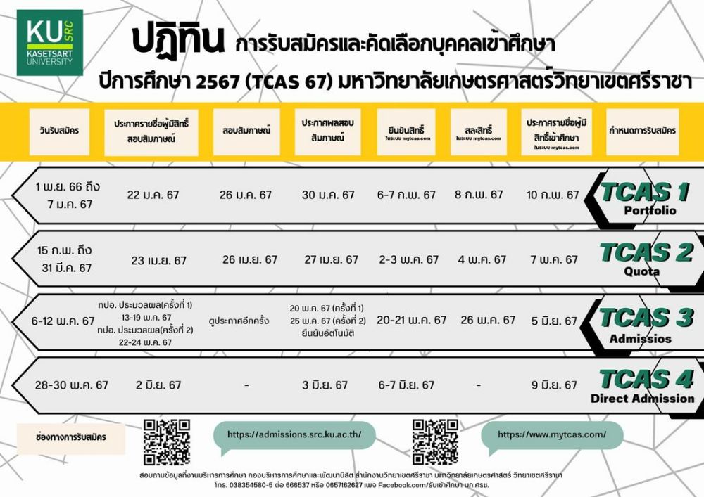 มาครบแล้ว! มหาวิทยาลัยเกษตรศาสตร์ ว.ศรีราชา เผยปฏิทิน TCAS67 เพิ่ม