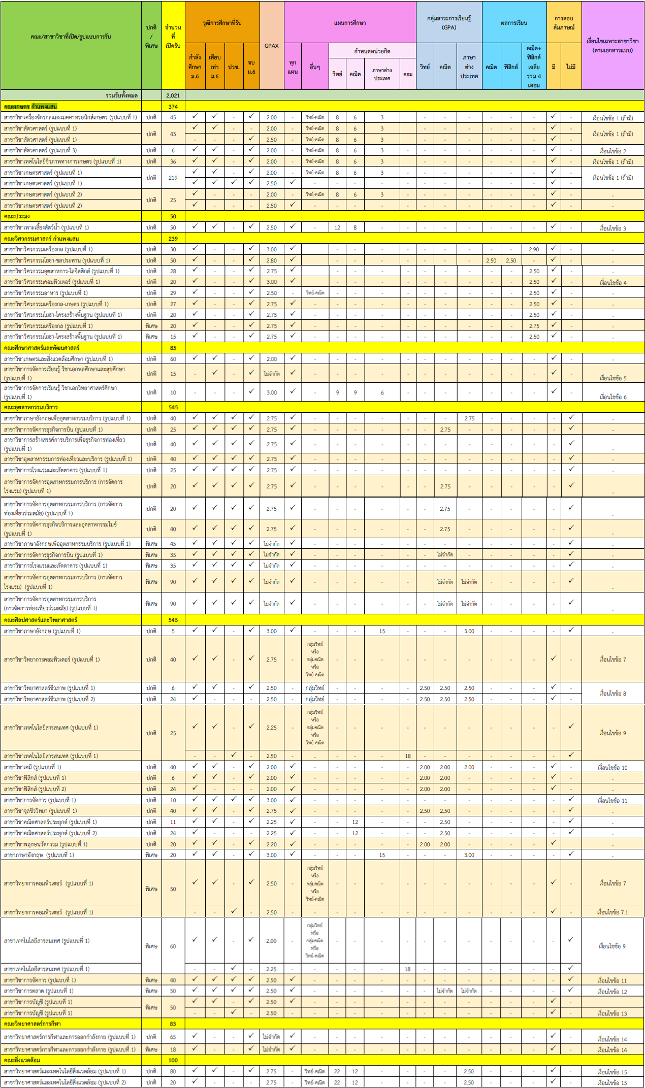 สาขาวิชาที่เปิดรับ
