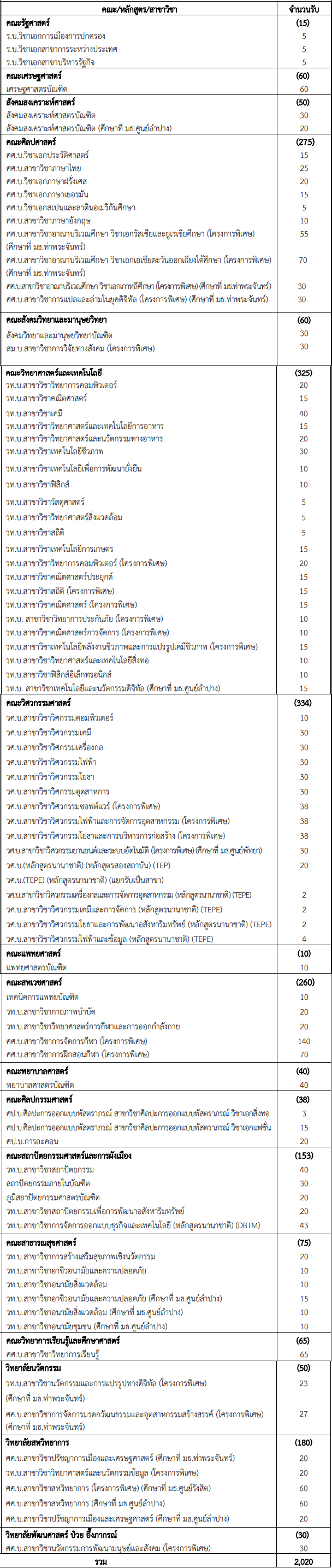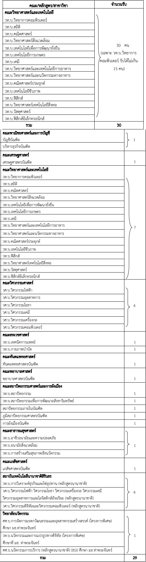 - คณะวิทยาศาสตร์และเทคโนโลยี 6 ที่นั่ง