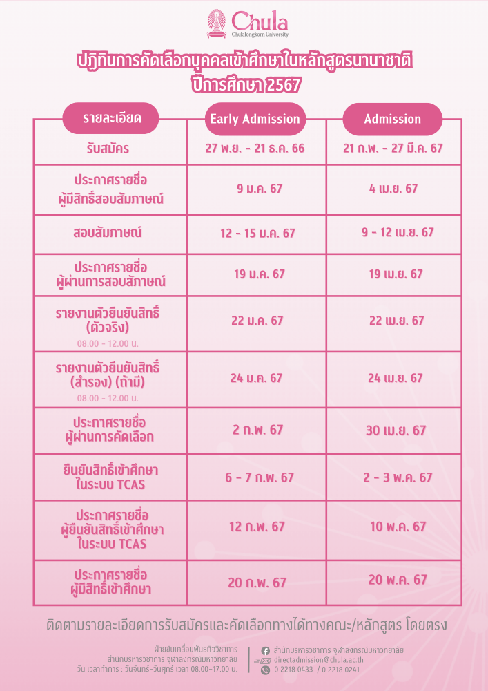 ปฏิทินรับสมัครรับตรงจุฬาฯ หลักสูตรนานาชาติ