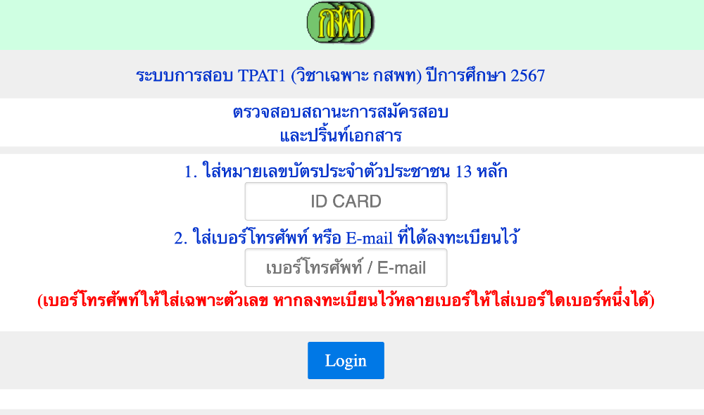 Login ด้วย "เลขบัตรประชาชน" และ "เบอร์โทรศัพท์ หรืออีเมล"