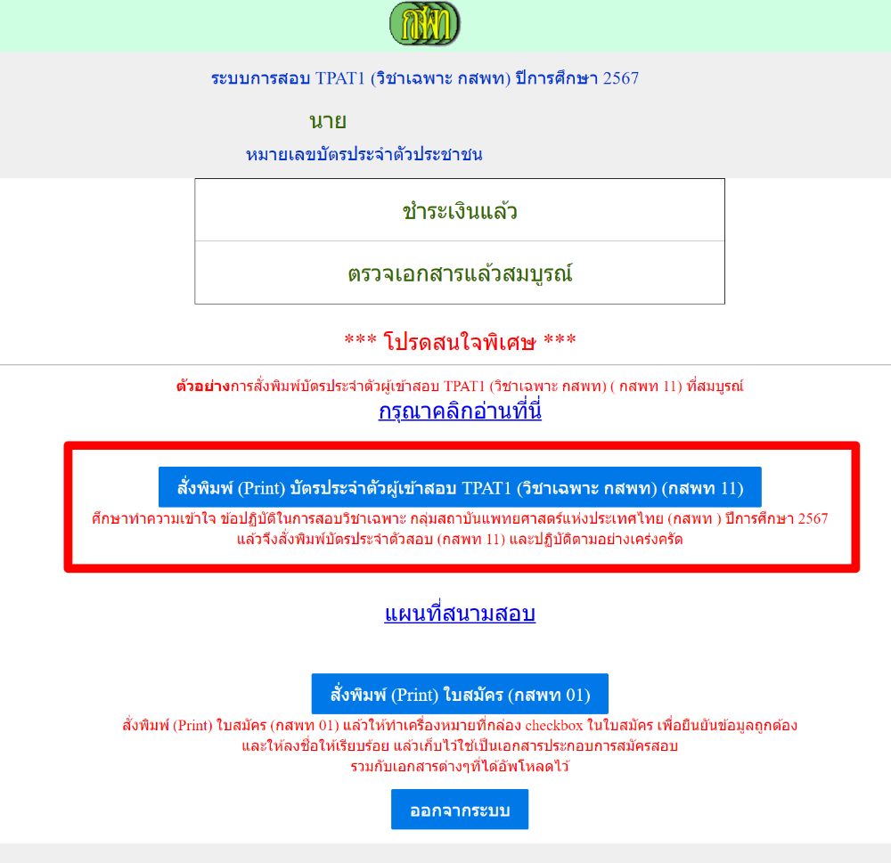 ด่วน! #dek67 เริ่มพรินต์บัตรเข้าสอบ กสพท (TPAT1) ได้แล้ว พร้อมเช็กสนามสอบทันที