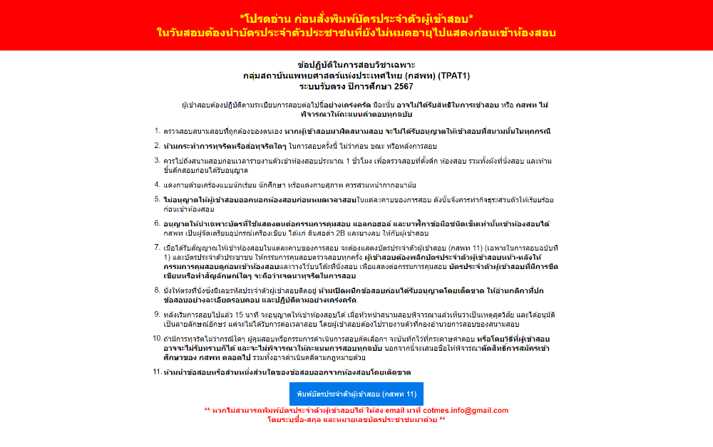 กดสั่งพิมพ์บัตรประจำตัวผู้เข้าสอบ และอ่านข้อปฏิบัติให้รอบคอบ