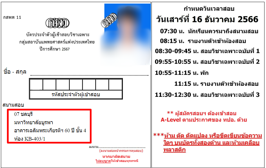 กสพท จะประกาศสนามสอบในบัตรประจำตัวผู้เข้าสอบ ซึ่งน้องๆ สามารถตรวจสอบได้จากทางด้านซ้ายของกระดาษ ว่ามีระบุว่าสอบที่ไหน อาคารอะไร และเข้าไปเช็กแผนที่สนามสอบตาม link ที่ กสพท ประกาศไว้