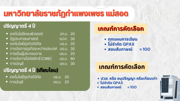 7.มหาวิทยาลัยราชภัฏกำแพงเพชร วิทยาเขต แม่สอด