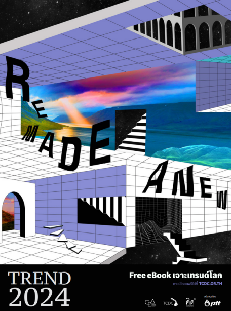 Creative Thailand ภูมิใจนำเสนอหนังสืออีบุ๊ก “Trend 2024: REMADE ANEW” ที่รวบรวมบทวิเคราะห์เจาะลึก เกาะติดทุกแนวโน้มและความเคลื่อนไหวที่กำลังจะเกิดขึ้นในภาคธุรกิจสร้างสรรค์ นำเสนอผ่าน 4 มิติสำคัญ ได้แก่ ผู้คน (Population) สังคมและวัฒนธรรม (Social & Culture) นวัตกรรมและเทคโนโลยี (Technology) รวมถึงนิเวศและสิ่งแวดล้อม (Environment) พร้อมด้วยเรื่องราวอีกมากมาย เช่น เจเนอเรชัน สีแห่งปี และบทความพิเศษสรุป 9 อุตสาหกรรมสร้างสรรค์ที่ประกอบด้วยสัญญาณการเปลี่ยนแปลง ข้อแนะนำสำหรับธุรกิจ และกรณีศึกษาที่น่าสนใจจากทั้งประเทศไทยและประเทศอื่นๆ ทั่วโลก