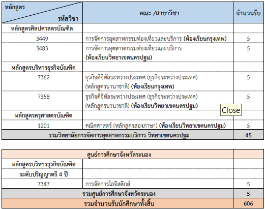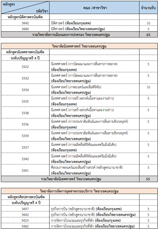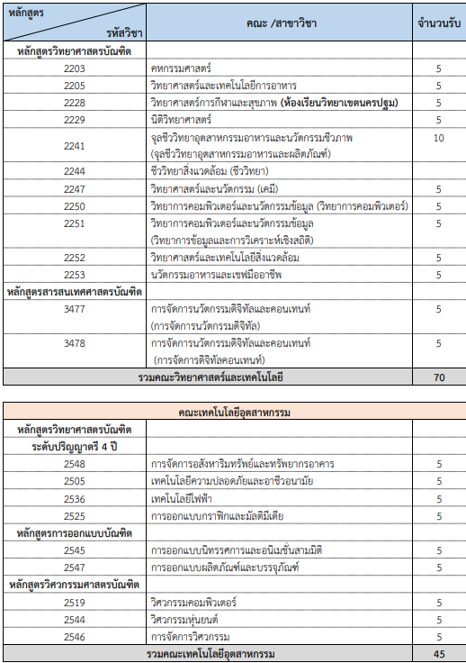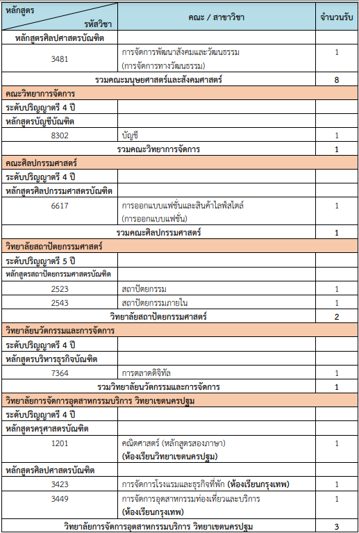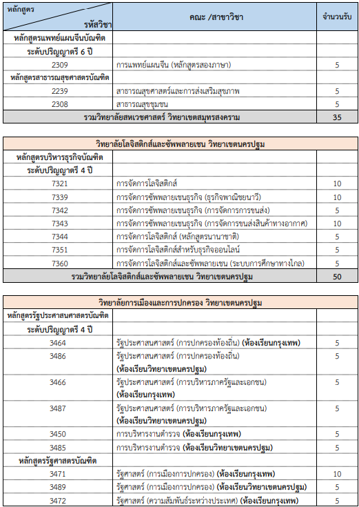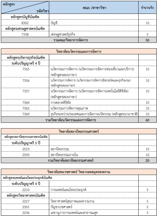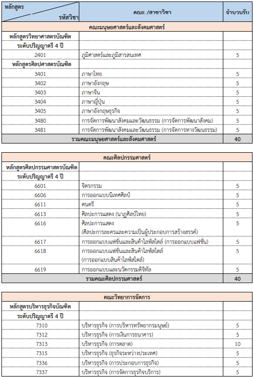 คณะที่เปิดรับ