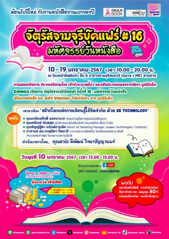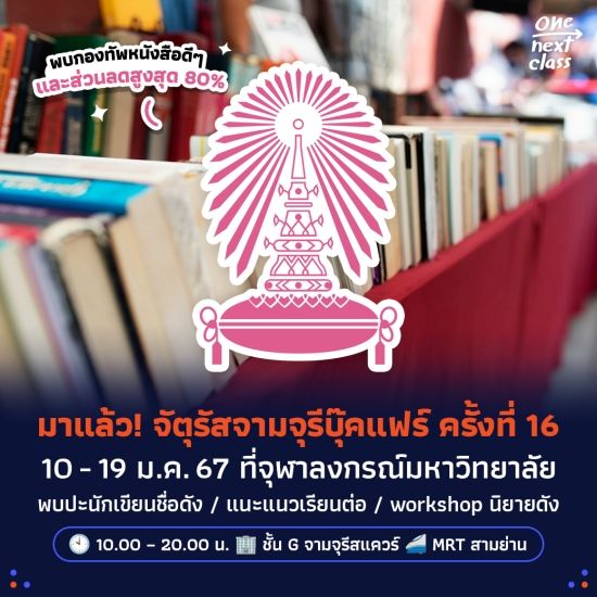 #อีเวนต์ดีบอกต่อ วันนี้ One Next Class #ชีวิตติดเรียนรู้ ขอเอาใจเหล่าหนอนหนังสือกันสักหน่อย เพราะล่าสุดศูนย์หนังสือจุฬาลงกรณ์มหาวิทยาลัย และสำนักงานจัดการทรัพย์สินจุฬาฯ เตรียมจัดงาน “จัตุรัสจามจุรีบุ๊คแฟร์ ครั้งที่ 16 : มหัศจรรย์วันหนังสือ” ในวันที่ 10 - 19 มกราคม 67 งานนี้จะมีไฮไลต์อะไรน่าสนใจบ้าง ตามมาส่องกันเลยยย~