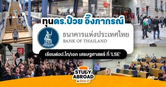 เปิดรับสมัครสอบคัดเลือกเพื่อรับทุน Dr. Puey Ungphakorn Centenary Scholarship ของธนาคารแห่งประเทศไทย ศึกษาระดับปริญญาโทขึ้นไป ณ The London School of Economics and Political Science (LSE) ประเทศอังกฤษ ประจำปี 2567 พร้อมโอกาสร่วมงานกับ ธปท. หลังเรียนจบ