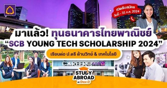 2024 SCB Young Tech Scholarship ทุนการศึกษาระดับปริญญาตรีสำหรับบุคคลทั่วไปที่สนใจเข้าศึกษาต่อในสถาบันการศึกษาชั้นนำต่างประเทศ ทางด้านวิทยาศาสตร์และเทคโนโลยี (Technology, Data, Digital & Innovation, and STEM) โดยธนาคาไทยพาณิชย์จะให้การสนับสนุนทุนการศึกษา 100% ตลอดหลักสูตร