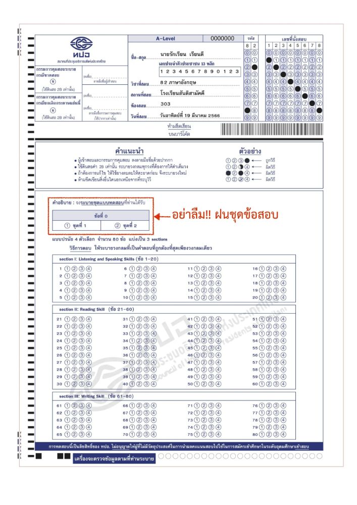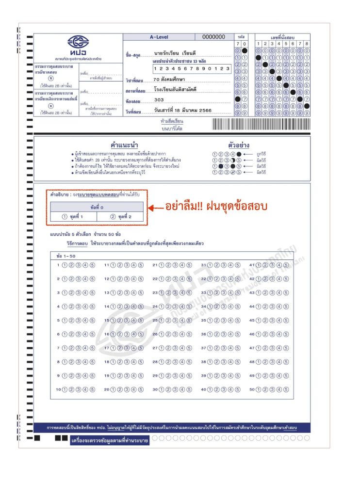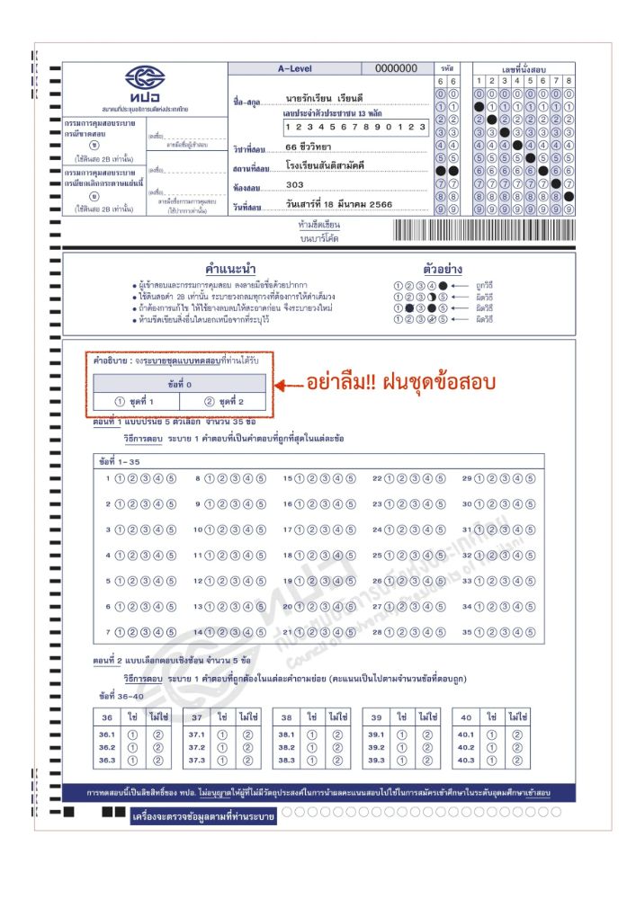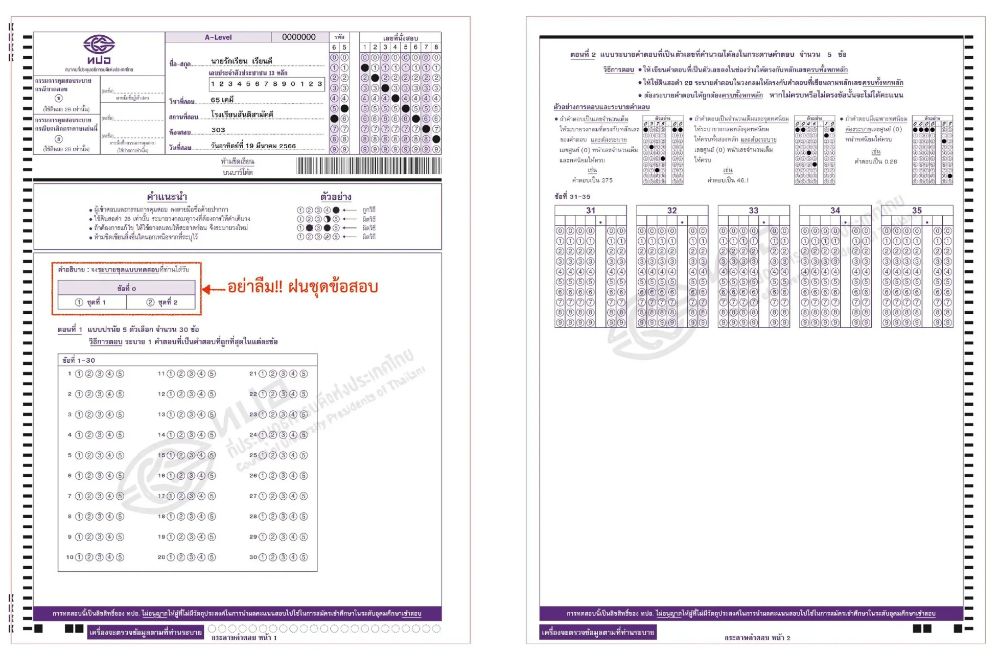 เปิดหน้าตากระดาษคำตอบ A-Level 67 ทั้ง 10 วิชา ระวัง! อย่าลืมฝนชุดข้อสอบ