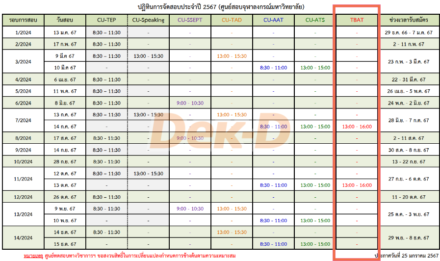- รอบทดลองสอบ: กรกฎาคม 2567