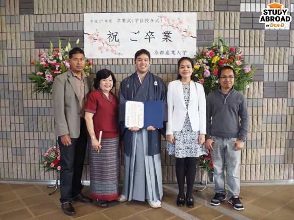 จากนั้นพี่ก็ส่งอีเมลแนะนำตัวและพูดคุยเรื่องหัวข้อที่สนใจกับทาง Professor (หลังจากนี้จะย่อว่า Prof.) โดยมีอาจารย์ที่ปรึกษาช่วยติดต่อให้ พอคุยเรียบร้อยแล้วพี่ก็สมัครหลักสูตร Ph.D. (Biotechnology) อยู่ในคณะวิศวกรรมศาสตร์ของ Kyoto Sangyo University และเลือกโปรแกรมวิจัยล้วน ไม่มี Coursework เพื่อให้ประหยัดเวลาขึ้น เพราะเรามีพื้นฐานวิจัยจากตอน ป.โทแล้ว ส่วนเรื่องภาษา พี่เรียนหลักสูตรอินเตอร์ คุยกับ Prof. และทำเปเปอร์เป็นภาษาอังกฤษ แต่ก่อนบินก็มีเรียนภาษาญี่ปุ่นเตรียมไว้เดือนนึงพอให้เอาตัวรอด