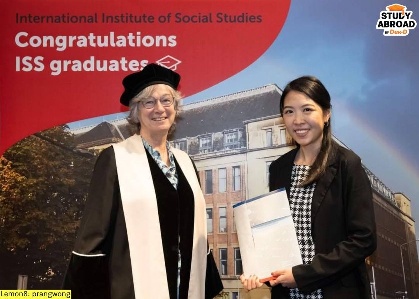 ตอนนั้นเราสมัครสาขา Development Economics และอยากเรียนต่อยุโรป เราก็นั่งหาข้อมูลว่าที่ไหนเปิดสอนและมีเก่งด้านนี้บ้าง ยื่นไปหลายที่แล้วได้รับการตอบรับเข้าเรียน 3 แห่ง สุดท้ายเลือกสาขา Development Studieis เมเจอร์ Economic of Development หรือเศรษฐศาสตร์การพัฒนา ที่ ISS Erasmus University Rotterdam ที่เนเธอร์แลนด์ เพราะโครงสร้างหลักสูตรน่าสนใจ มีชื่อเสียงด้านที่เราจะเรียน และใช้เวลาเรียนแค่ 15 เดือนกำลังดี