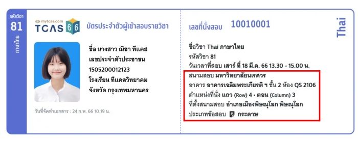 ทปอ. เตรียมเปิดระบบให้ #dek67 พิมพ์บัตรประจำตัวผู้เข้าสอบ A-Level67 ได้ ตั้งแต่วันที่ 24 กุมภาพันธ์ - 18 มีนาคม 2567 โดยในบัตรเข้าสอบนั้นจะระบุข้อมูล "สถานที่สอบ" ไว้ด้วย ซึ่งน้องๆ ก็สามารถเช็กได้เลยว่าจะต้องไปเข้าสอบที่สนามไหน อาคารชื่ออะไร ชั้นไหน ห้องไหน หรือนั่งตรงไหนในห้องสอบ