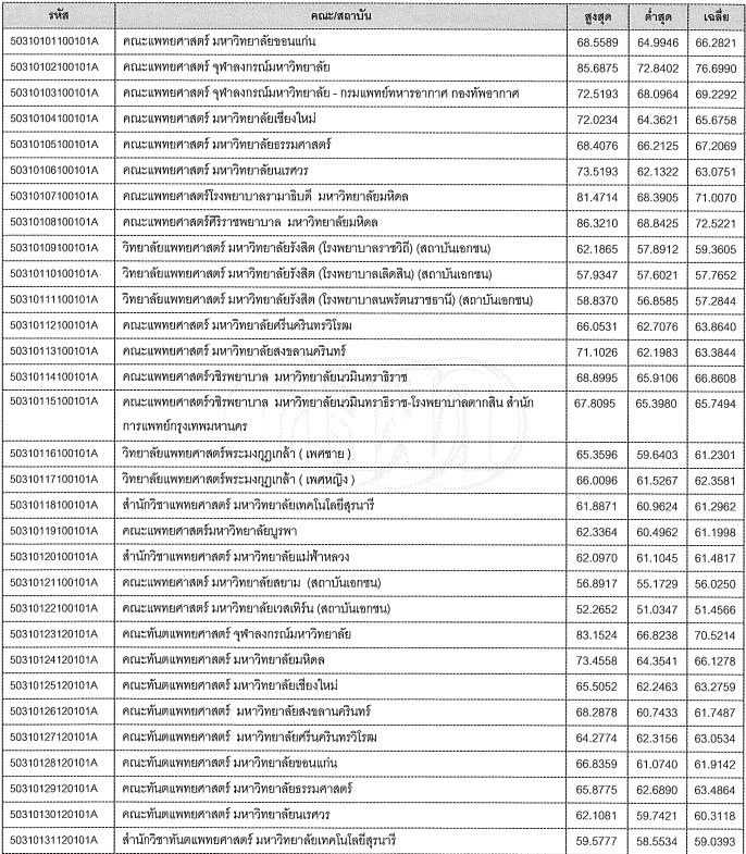 สถิติคะแนนต่ำสุด-สูงสุด กสพท 66